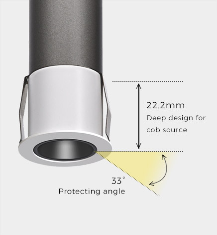 Soft light effect, deep design (22.2mm) for cob source, large shading Angle 33°, better anti-glare effect.