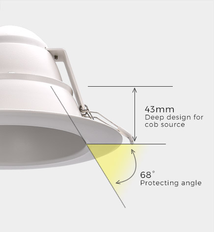 Soft light effect, deep design (43mm) for cob source, large shading Angle 68°, better anti-glare effect.