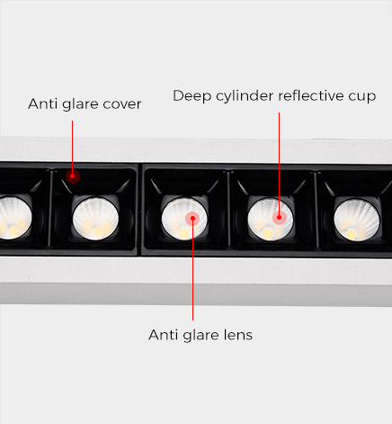Soft light effect, deep design for cob source, large shading Angle, better anti-glare effect.