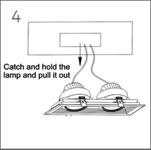 Disassemble step: First:Catch and hold the lamp and pull it out