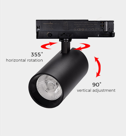 Universal line voltage led track lighting heads, fit in 3 phase 4 wires track systems.Adjustable Angle track lights with 355 degrees horizontal rotation, 90 degrees vertical adjustment, more accurate and professional multi-angle lighting beams.